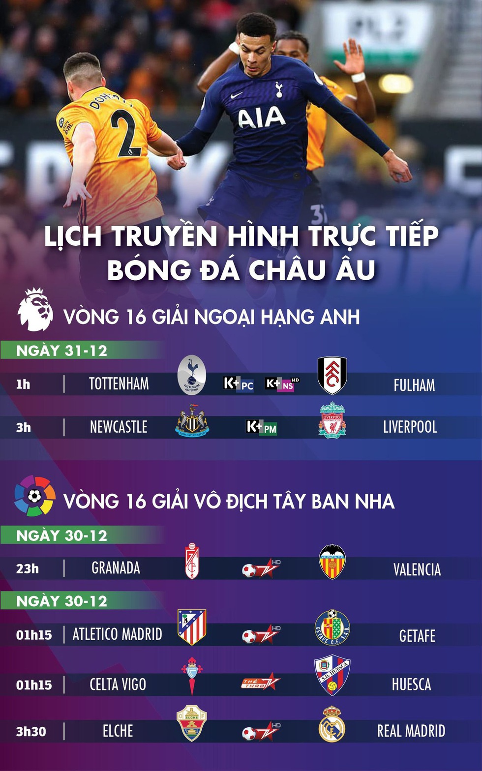 Home / Uncategories / Lịch trực tiếp bóng đá châu Âu 31-12: Tâm điểm Tottenham, Liverpool và thành Madrid